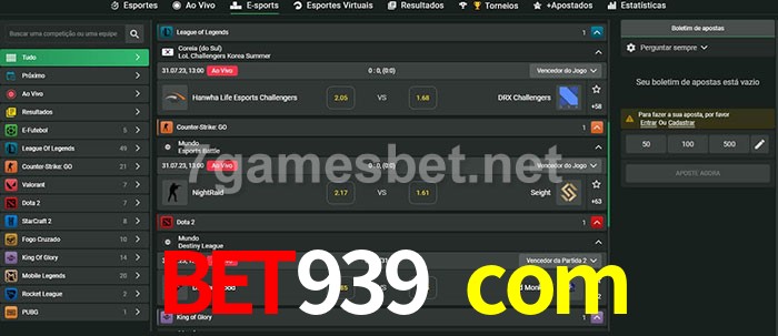 O bet939 com oferece uma grande seleção de opções de apostas em e-sports com probabilidades competitivas